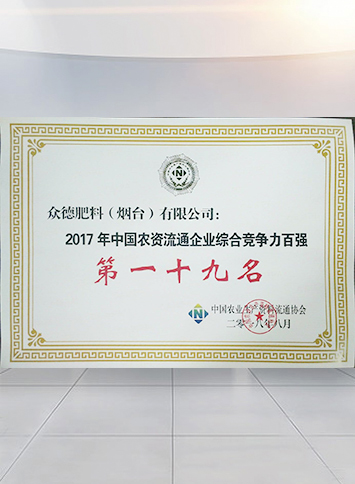 2017年中國(guó)農(nóng)資流通企業(yè)綜合競(jìng)爭(zhēng)力百?gòu)?qiáng)第19名
