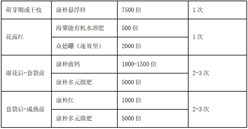 E、中微元素因缺補缺、應(yīng)根據(jù)土壤及樹體情況,通過土壤或葉面,進行適當補充;對于酸化土壤,要加大鈣鎂施用。