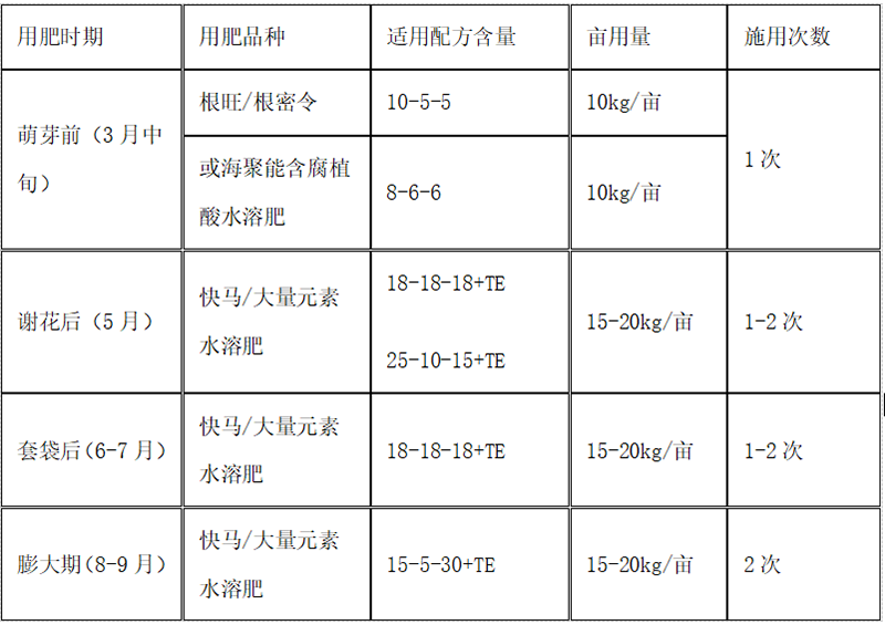 C、磷肥適當調(diào)減,重在秋后基肥,其次夏季花芽分化期前。