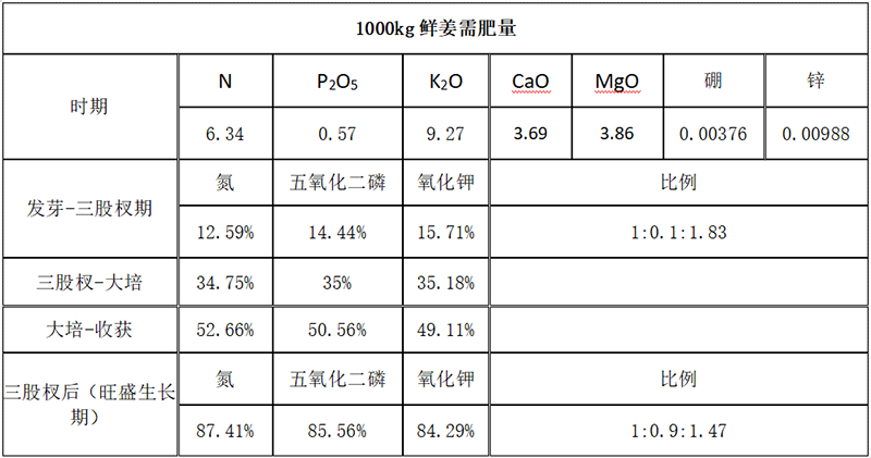 ?。?)大、中、微量元素兼顧:大姜除對(duì)氮磷鉀的需求外,對(duì)鈣、鎂需求也很大,中量元素鈣鎂及微量元素應(yīng)早施。